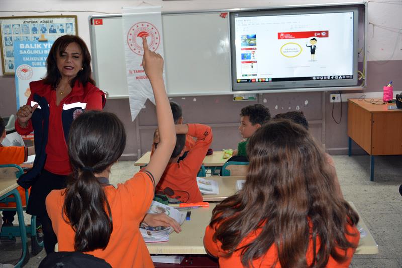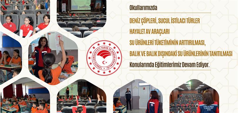 Denizlerimizi tehdit eden çevresel sorunlara dikkat çekmek amacıyla "Deniz Çöpleri, Sucul İstilacı Türler ve Hayalet Av Araçları" ve balık tüketiminin faydaları konusunda farkındalık oluşturmak, sağlıklı beslenmede önemli rol alan su ürünlerini çocuklarımıza sevdirmek, ülke ekonomisine, üretime ve balığın faydalarını çocuklarımıza küçük yaşta öğreterek sağlıklı nesillerin yetişmesine katkı sağlamak amacıyla "Su Ürünleri Tüketiminin Arttırılması, Balık ve Balık Dışındaki Su Ürünlerinin Tanıtılması" konularında eğitimler düzenlenmektedir. Eğitimde öğrencilere, balığın faydaları, denizlerde biriken plastik ve diğer atıkların ekosistem üzerindeki olumsuz etkileri anlatılmaktadır. Ayrıca, denizlere zarar veren istilacı türler ve terkedilmiş av araçlarının (hayalet ağlar) deniz canlılarına nasıl tuzak kurduğu örneklerle açıklanmaktadır.